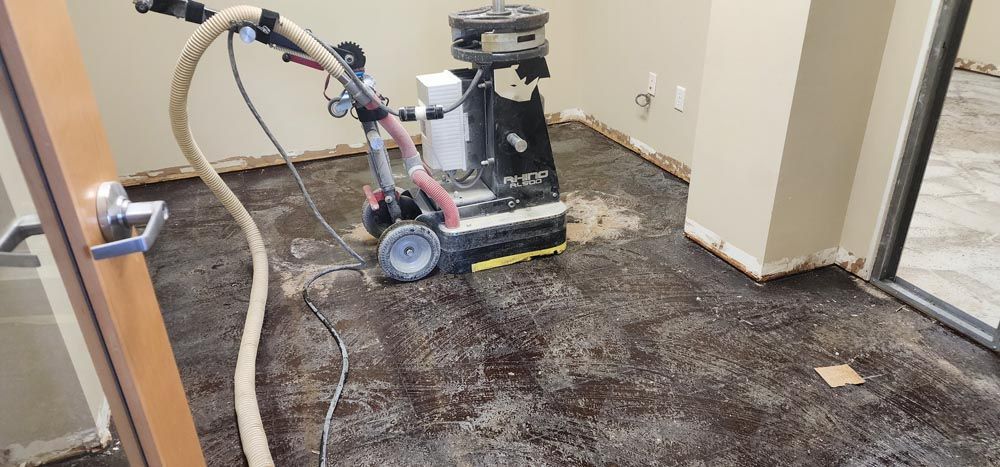 Adhesive removal in Asheville to prepare concrete for epoxy, stain, or polish