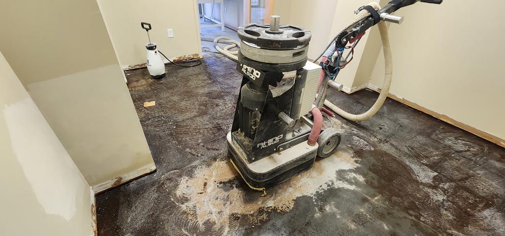 You receive a thorough removal process that clears the slab without leaving soft spots, bumps, or residue that would interfere with your new flooring. Professional grinding equipment removes adhesive more effectively than hand scraping or chemical strippers, and dust containment keeps the work area cleaner during the process. In Asheville, where basements and garages often reveal old glue after carpet or tile removal, this service is essential before moving forward with any coating or stain.
