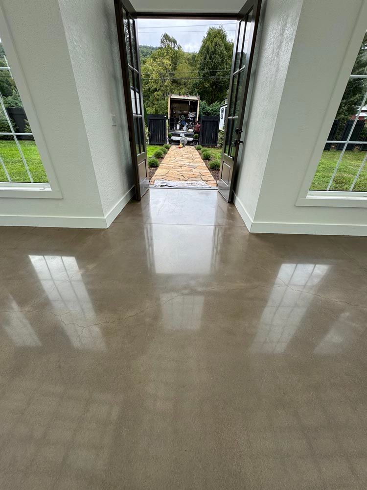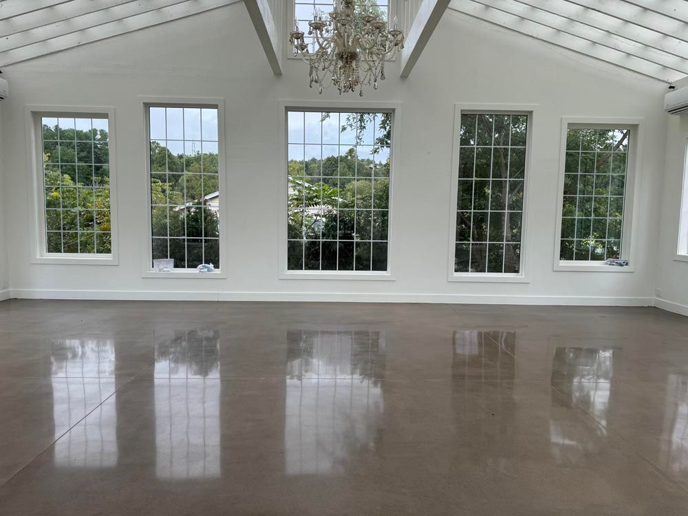 Polished concrete provides a durable, low-maintenance flooring solution that works in both residential and commercial settings throughout Asheville, offering long-term performance without the need for coatings or constant upkeep. Contact the team to discuss finish options and scheduling for your project.